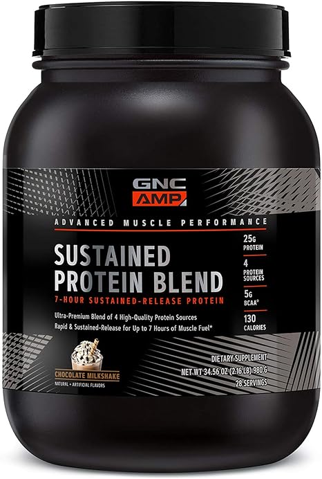 Amazon Com Gnc Amp Sustained Protein Blend Chocolate Milkshake 28 Servings High Quality Protein Powder For Muscle Fuel Health Household