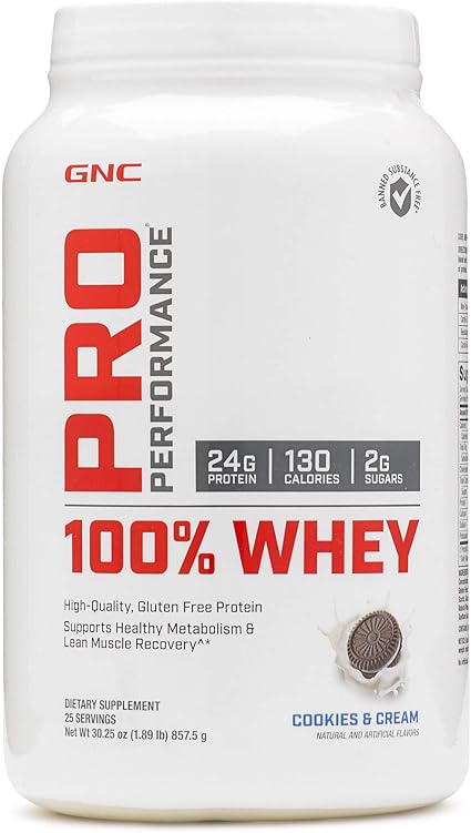 Amazon Com Gnc Pro Performance 100 Whey Protein Powder Vanilla Cream 25 Servings Supports Healthy Metabolism And Lean Muscle Recovery Health Household